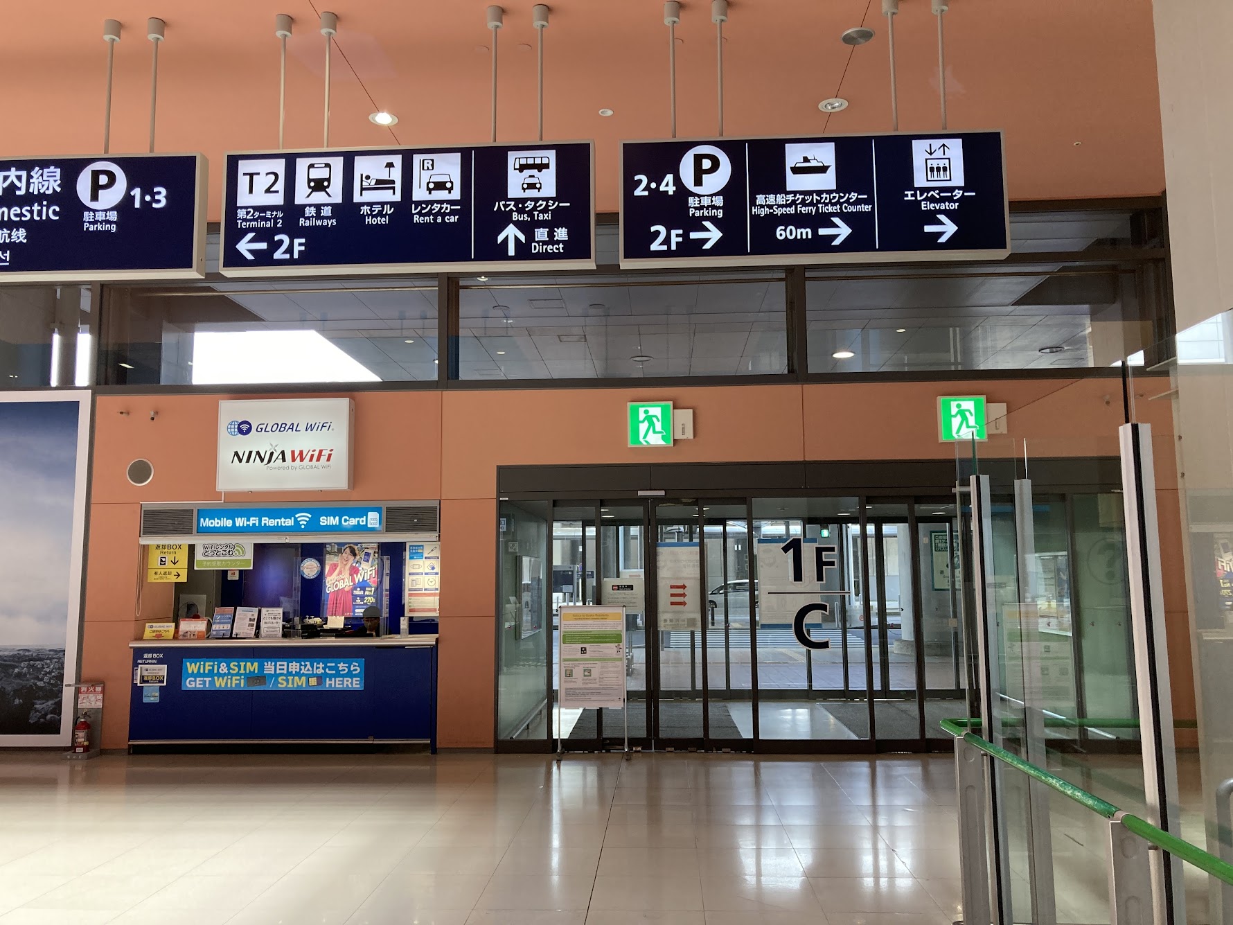 Once you arrive at the arrival lobby, you will go out of the terminal building through either of exit 1F-A to 1F-G.