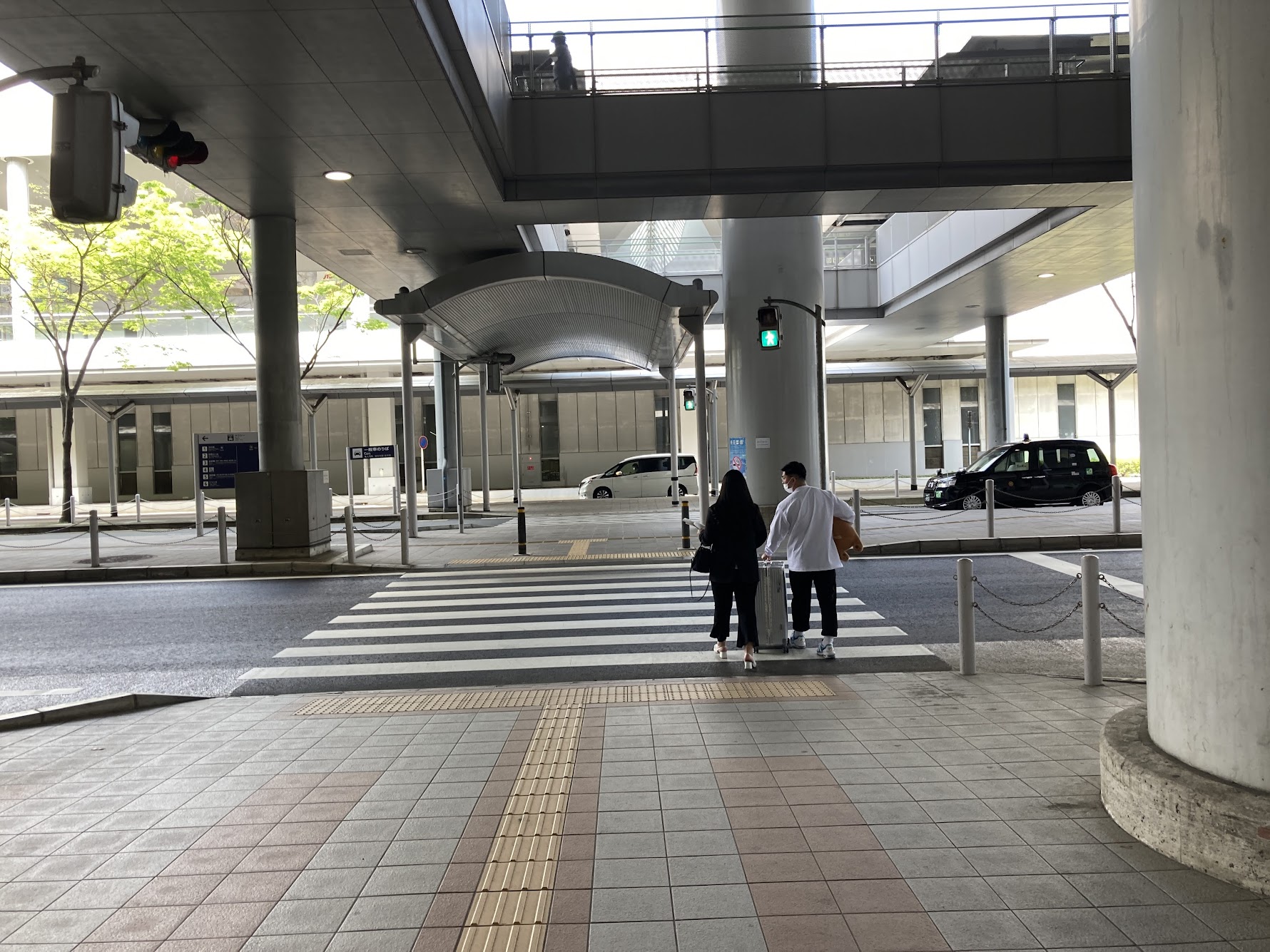Pass by the limousine bus stop and cross at the pedestrian crossing.
