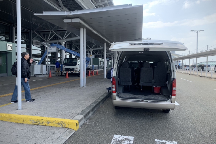Upon reaching Kansai International Airport departure floor, the driver will unload the luggage.