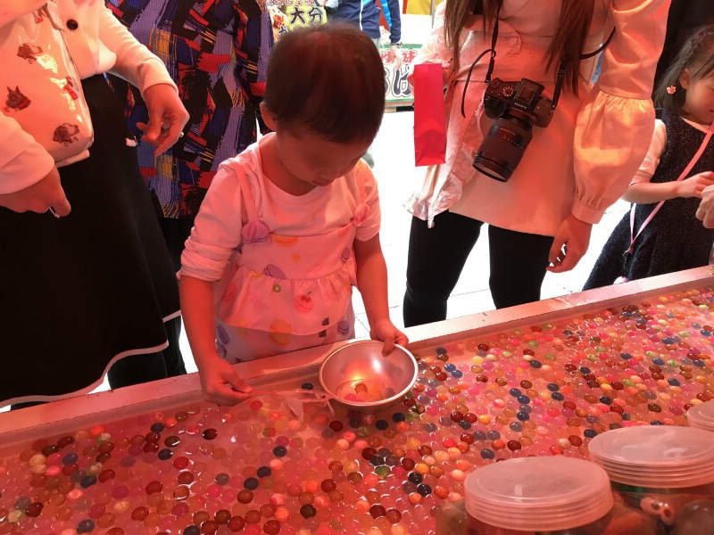 kid enjoy the bouncy ball scooping! I remember I liked and played a lot when I was a kid, hehe.