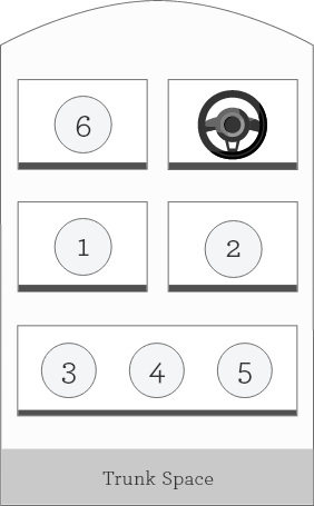 | Possible combinations for boarding | 3pax + 6suitcase 4pax + 5suitcase 5pax + 4suitcase |